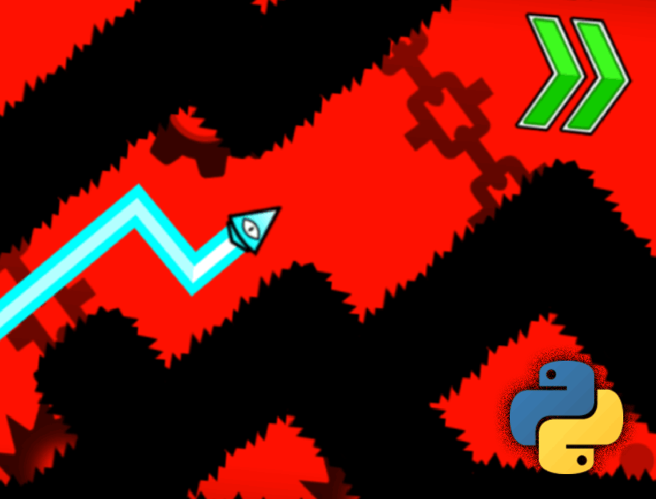 Código fuente del Wave de Geometry Dash en Python usando la librería Pygame.