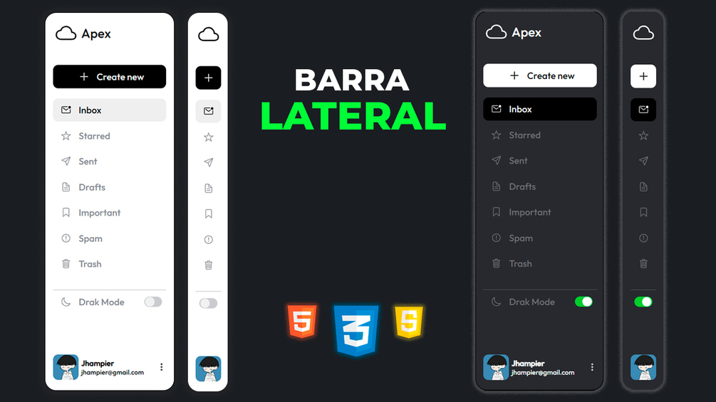 Obtén el código de esta Barra Lateral Responsiva con Modos Claro y Oscuro, desarrollada con HTML, CSS y JavaScript.